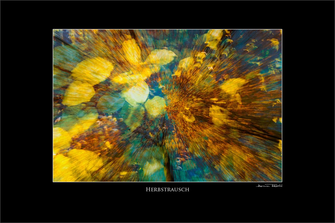 Mit diesem Bild möchte ich den Farbenrausch und die Bewegung im Herbst darstellen. Es ist aus verschiedenen Herbstmotiven entstanden.