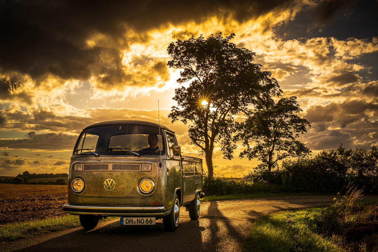 Eine alte, aus Griechenland importierte VW T2 Pritsche, wurde komplett vom alten Lack befreit und fährt nun in Stahloptik über die Straßen.